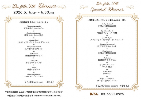 錦糸町のイタリアン「ITALIAN DaFilo」のブログ 9周年ディナーのご案内!