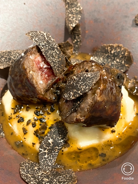 先日の季節のおすすめコースより。*銀の鴨肉 自家製ソーセージとゆり根 黒トリュフ旨味の詰まった青森...